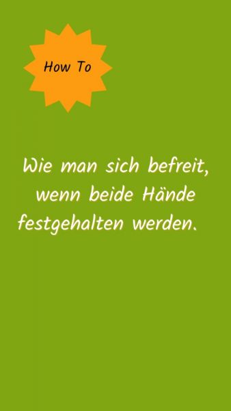 Aufgrund des ungleichen Kräfteverhältnis besteht in dieser Situation eher die Gefahr, dass ein Kind verletzt wird. Um sich vor Schaden zu bewahren, ist bei der Selbstverteidigung mehr erlaubt. Eingeübte Befreiungstechniken werden mit wirksamen Techniken, z.b. gegen das Schienbein treten, ergänzt. Wir besprechen hier vorrangig das richtige Verhalten nach der Befreiung. Also z.B. sich in Sicherheit bringen durch Weglaufen und Hilfe holen.