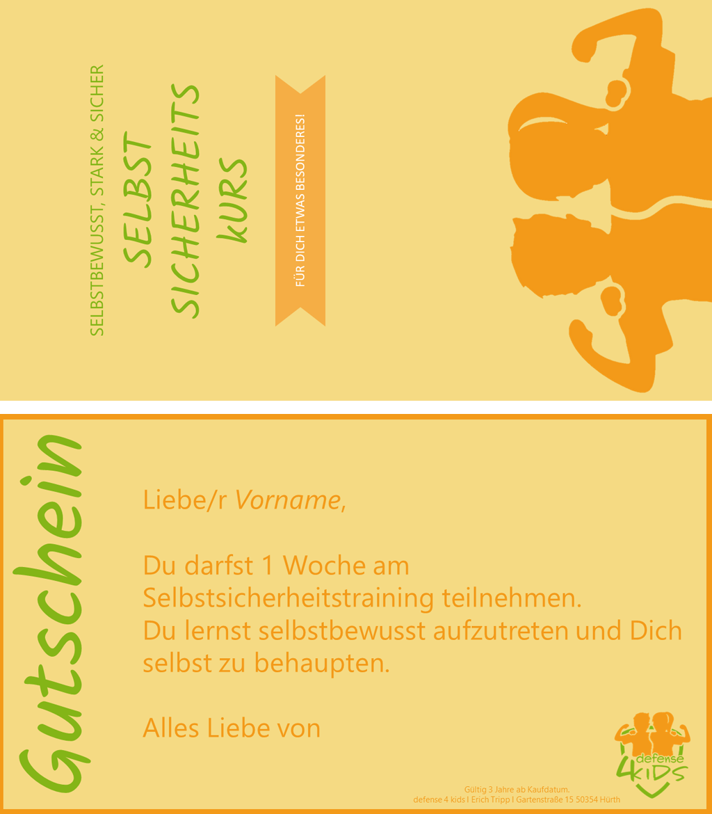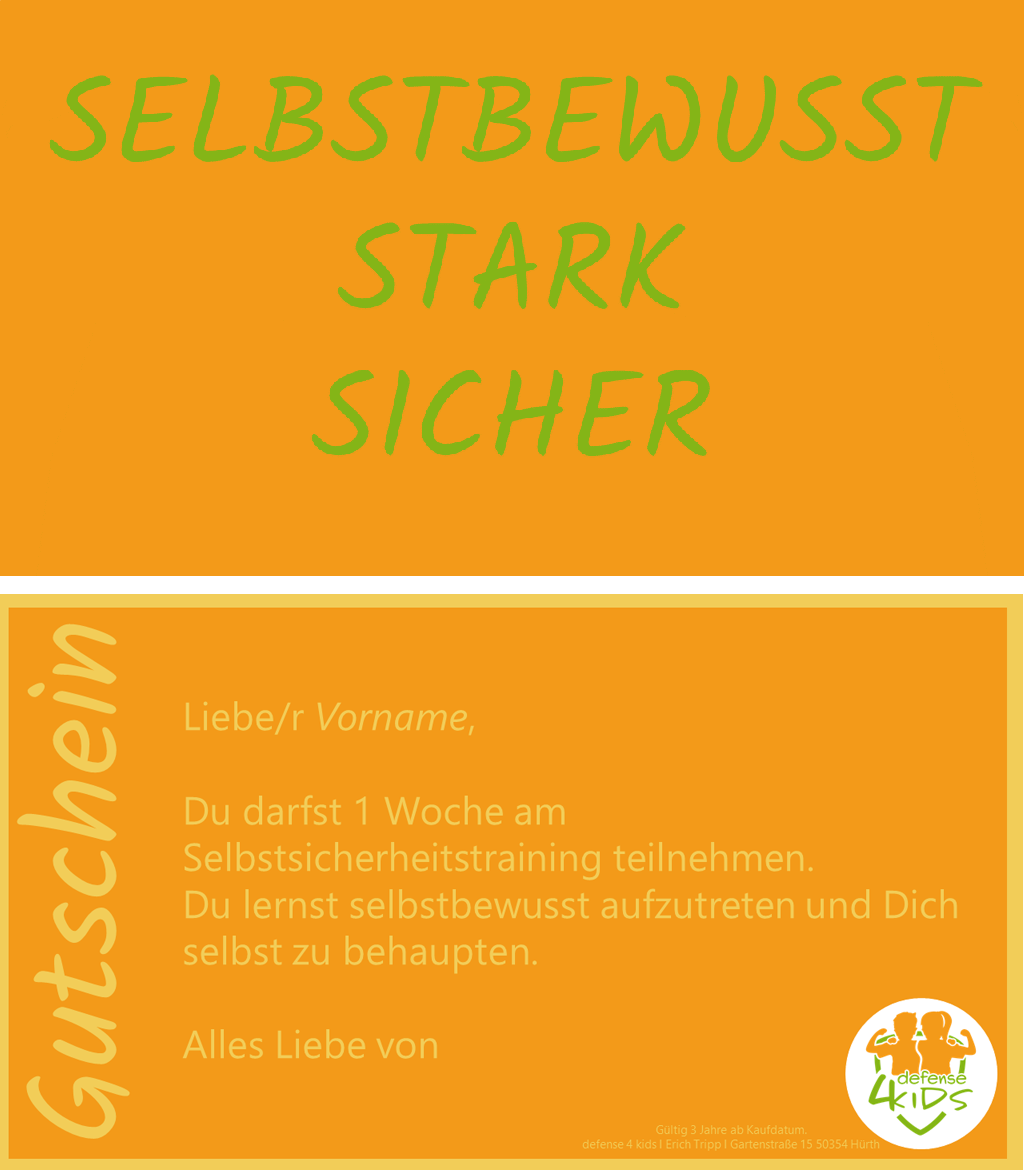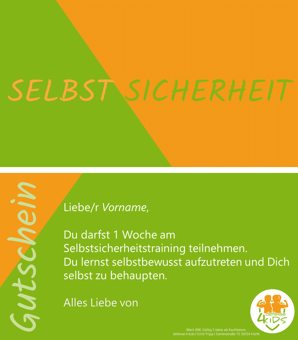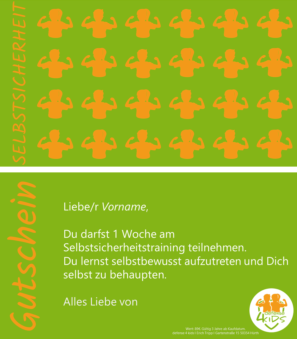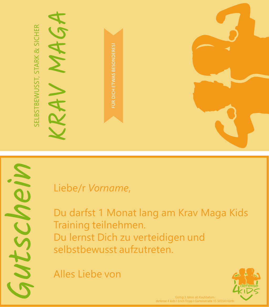 Dann verschenken Sie doch einen Gutschein für unser Krav Maga Kids Training oder unseren Selbstsicherheitskurs!